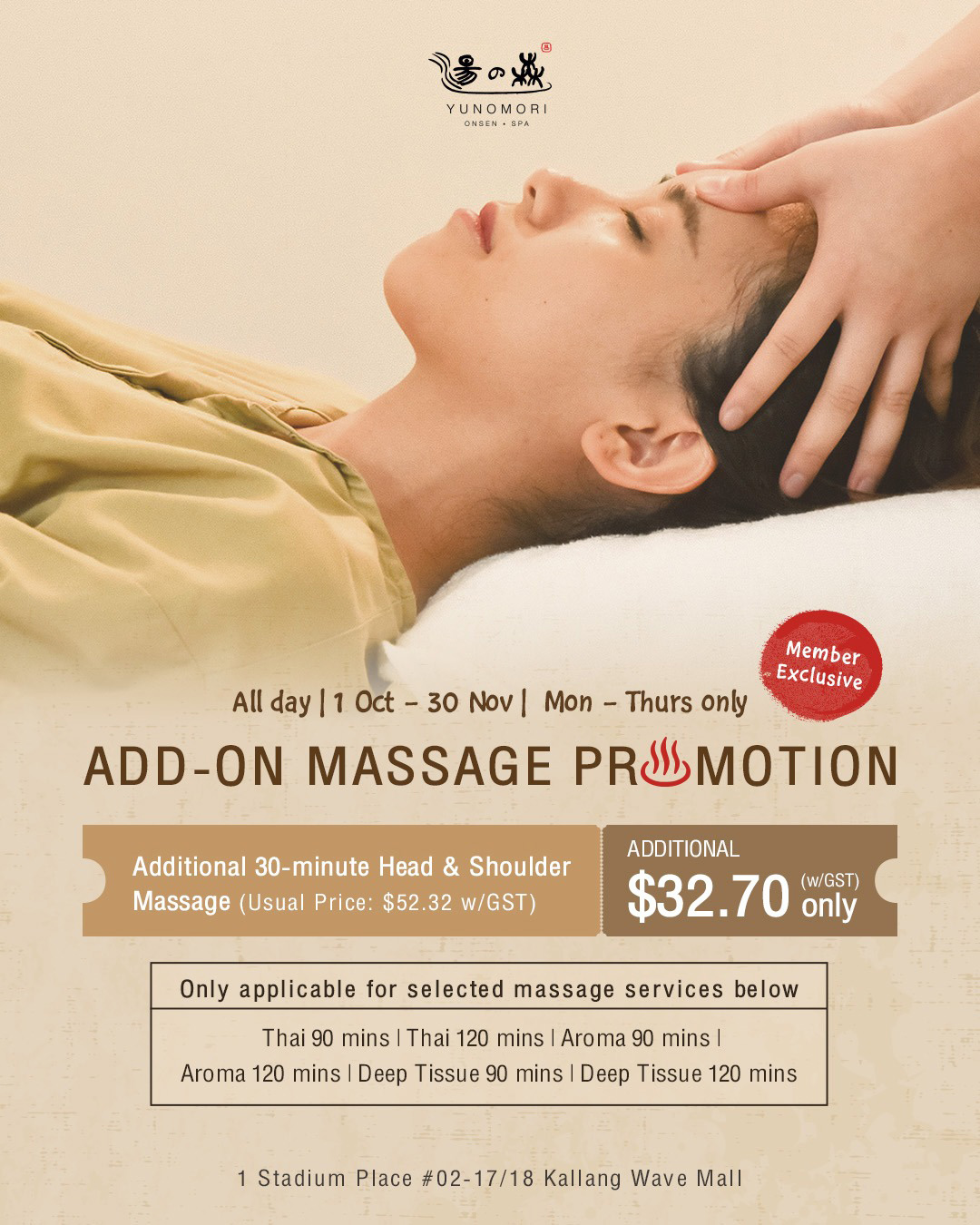 - This promotion is applicable for Yunomori Onsen & Spa Singapore only
