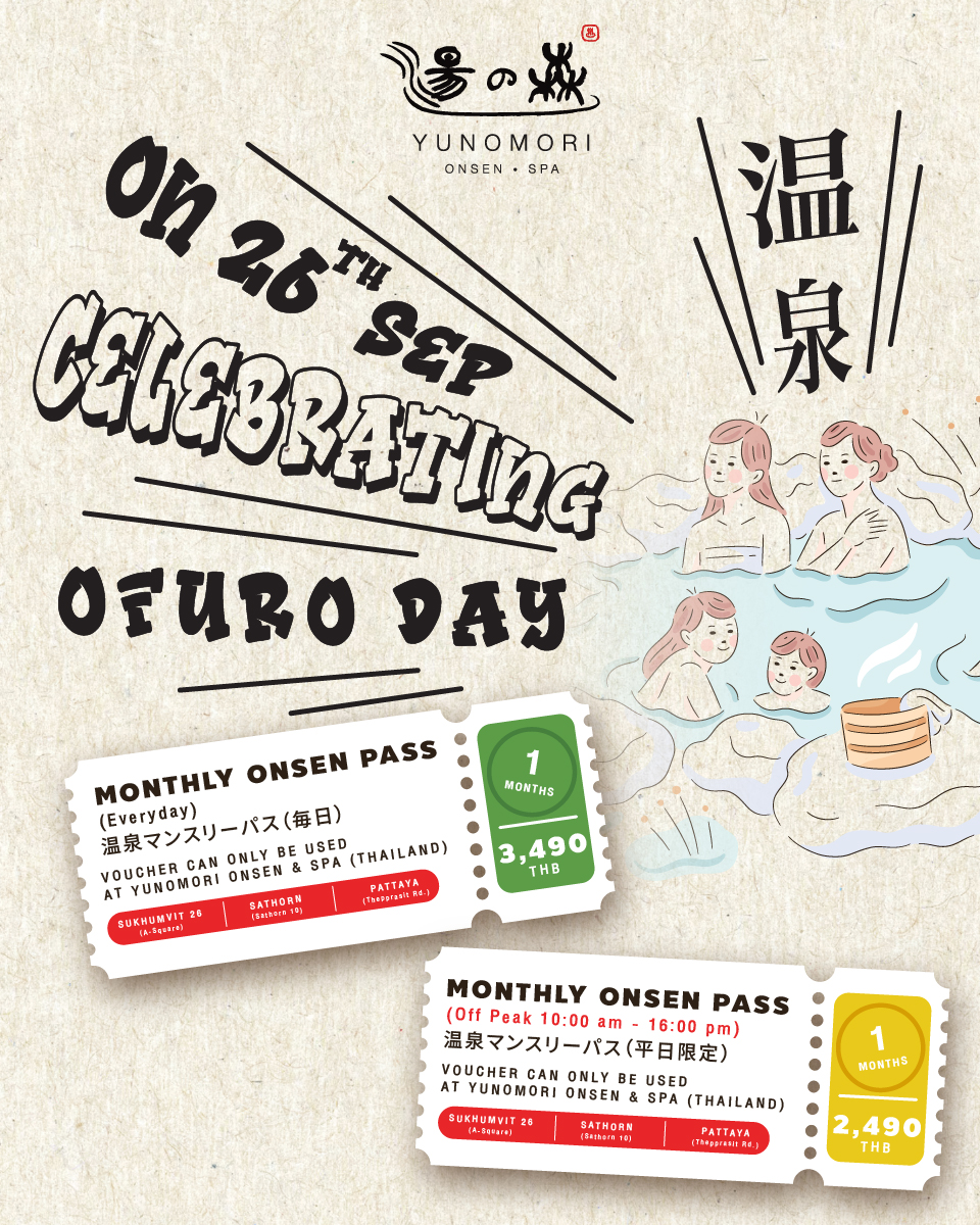 - Valid at Yunomori Onsen & Spa Thailand: Sathorn 10, Sukhumvit 26, and Pattaya.