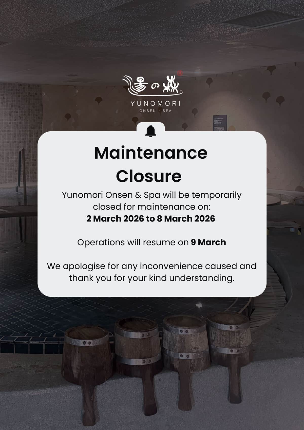Temporary Closure for Maintenance: 2 March to 8 March 2026